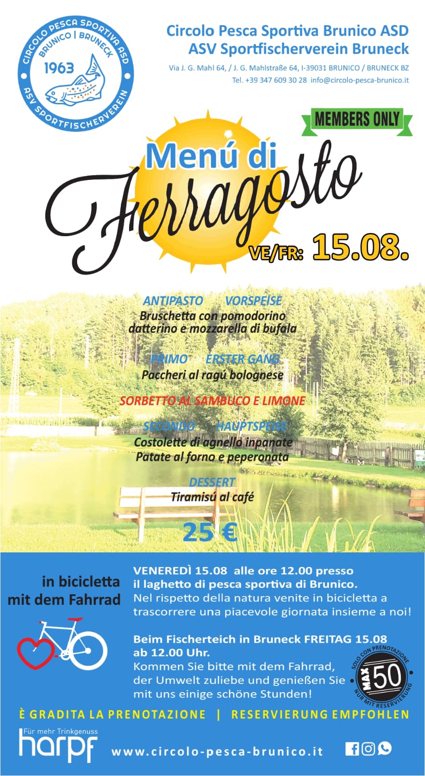 Venerdì 15/08/2025 alle ore 12.00 presso il laghetto di pesca sportiva di Brunico.